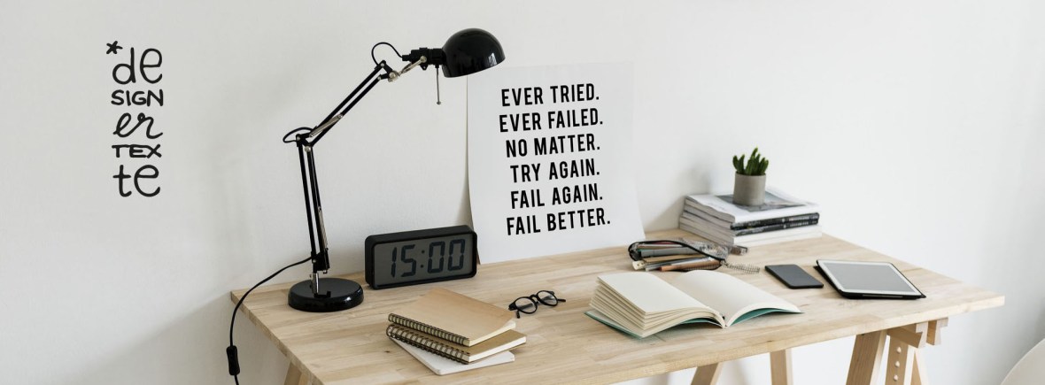 designertexte ist nicht auf den Mund gefallen und hat kein Brett vorm Kopf. Sondern Ideen für Ihre neuen Texte. Nicht irgendwelche Texte. Texte vom designer. designertexte eben.
